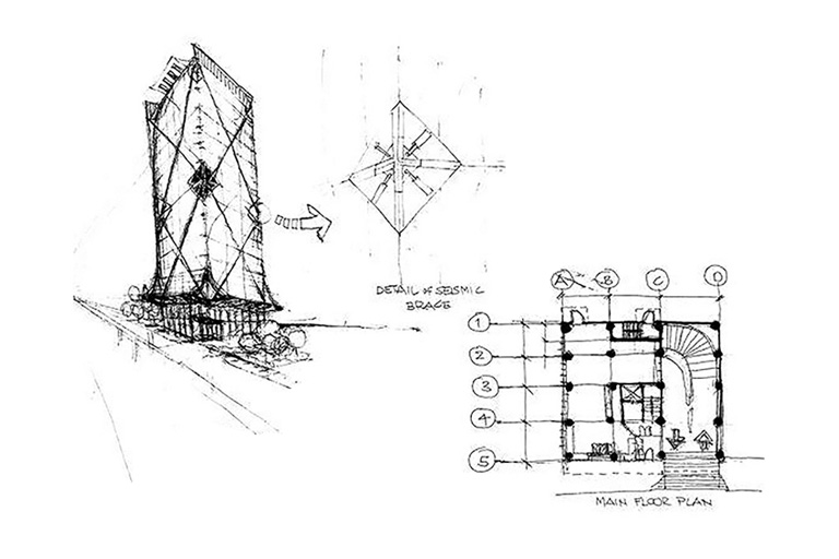Next up in the OAA Summer Sketches series, we're excited to feature the work of Rizalino Ferrer. These sketches depict a proposal for a commercial office building, with exposed structural steel details.