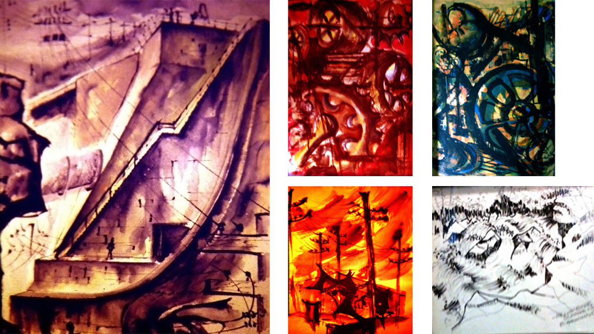Continuing the OAA Summer Sketches series, we're featuring several works by William Kachmaryk. The first image is a stylized vision of the Great Lakes Ontario Dam. Subsequent images depict a variety of subjects, exploring relationships between the natural and the built environment.